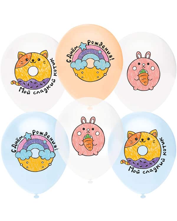 Главная страница » Магазин » Шарики из латекса » Шары с рисунками » С Днем Рождения! (милые сладости) кристалл